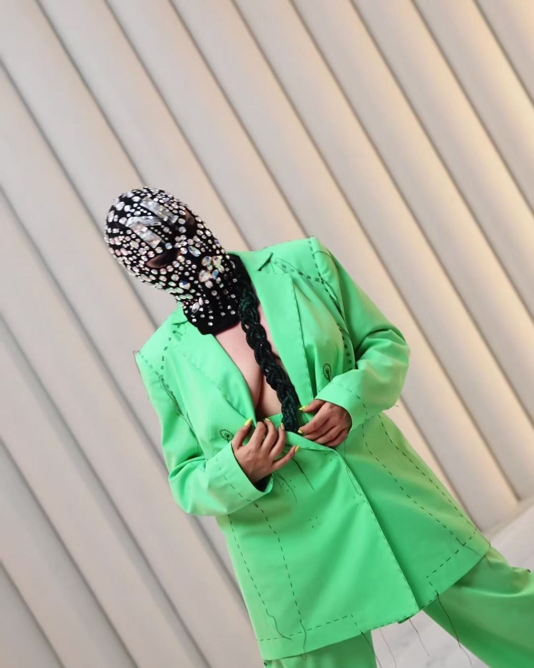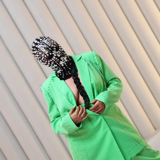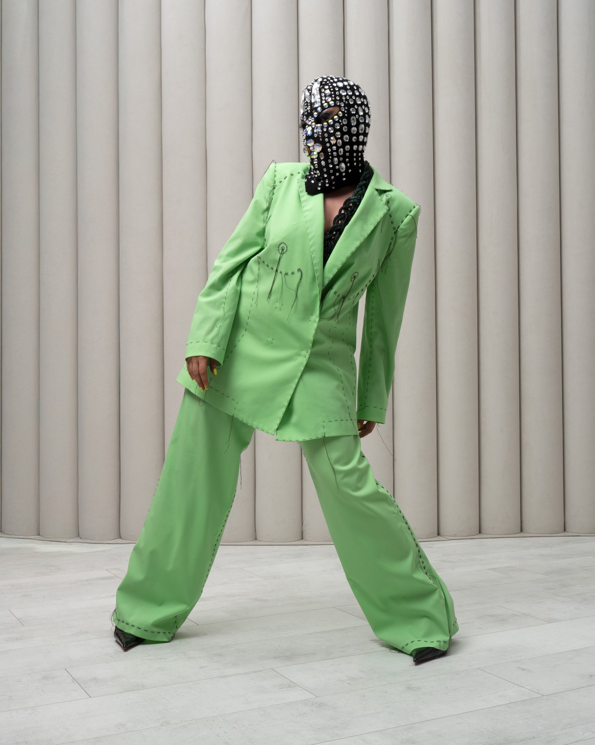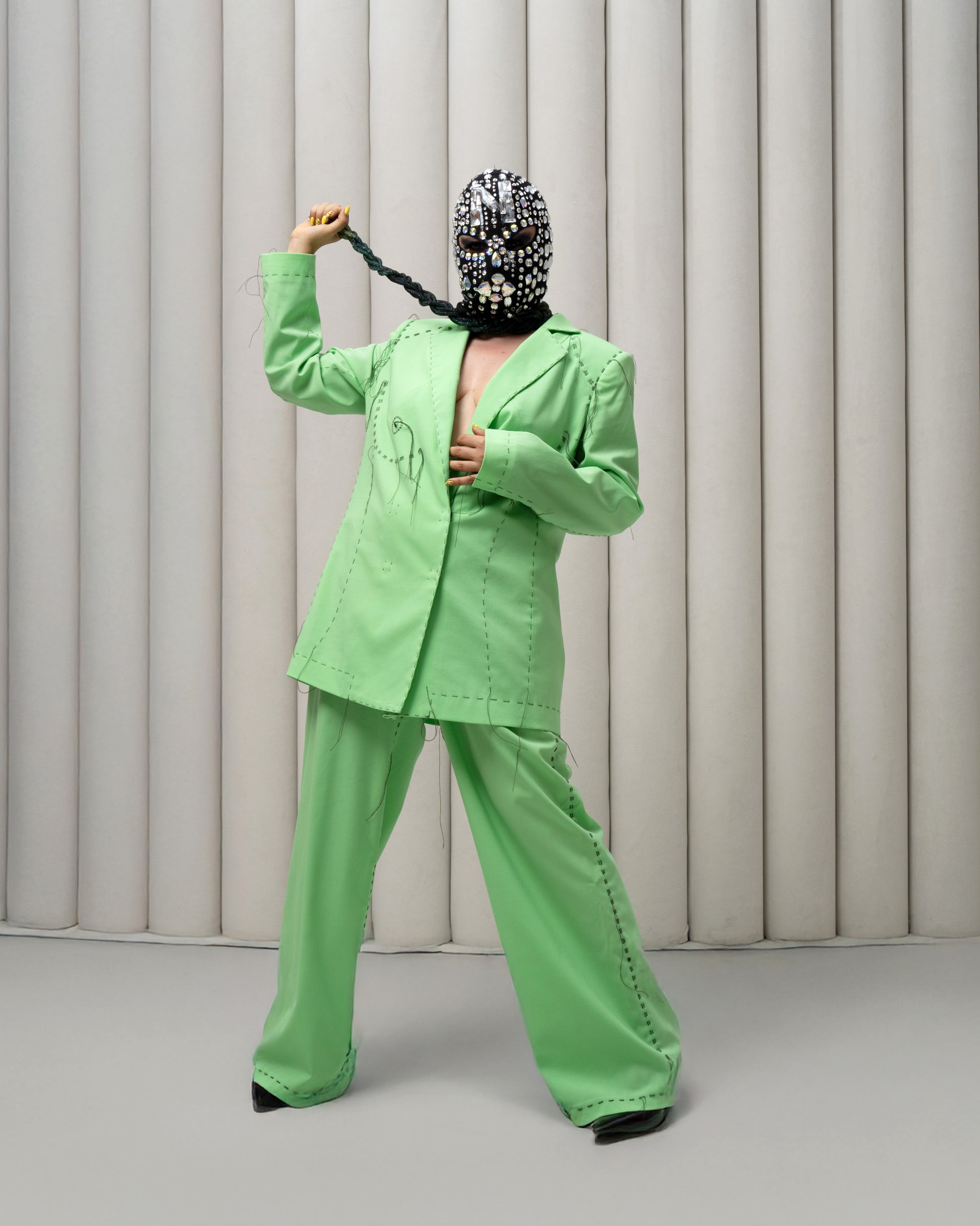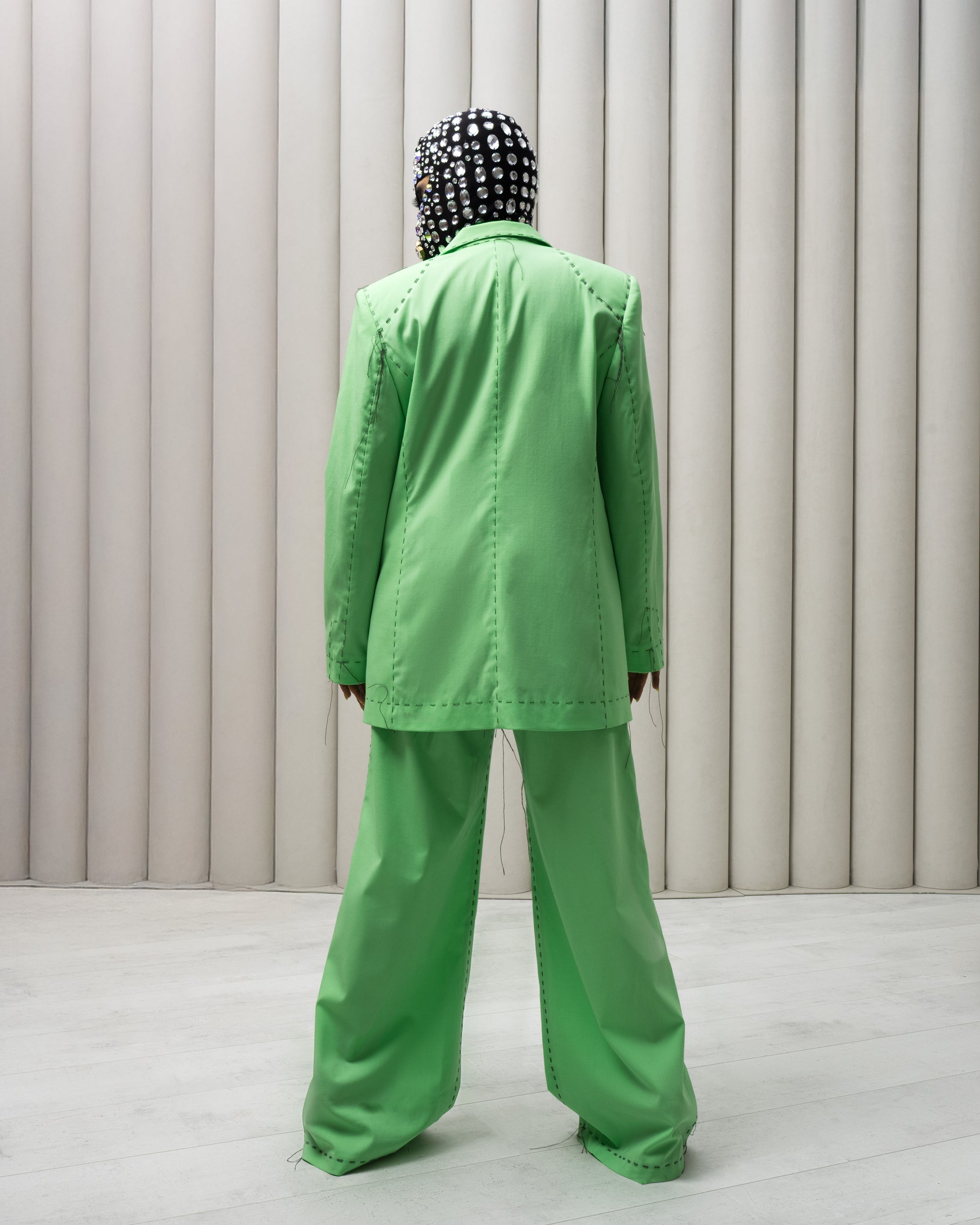 A suit made for the moment you press the exit system. Neon-loud, mock seams, and the crystal clear statement: no more résumé updates, no interview scheduled. This is business attire with zero obedience. Perfect for when “goodbye” and never “see you later”.